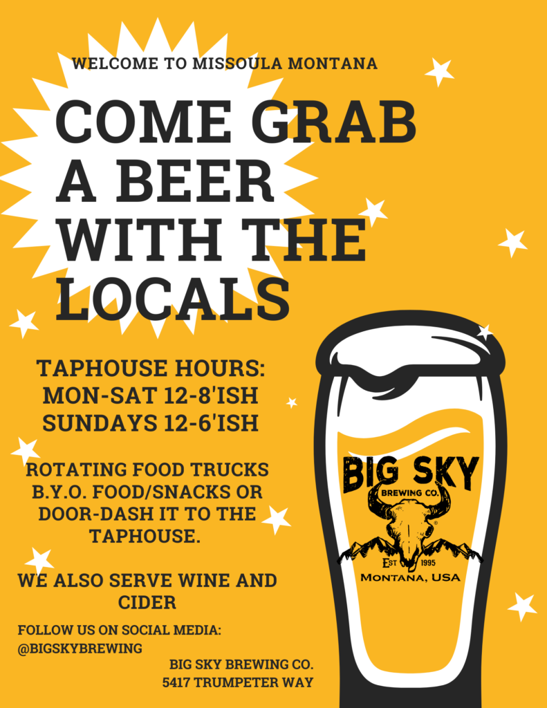 Big Sky Brewing Company’s tasting room features a wide variety of our beers on tap in fact – unless we are slacking – the tap lineup above should be pretty much what we have on tap right now! We generally have about a dozen beers and hard seltzers available in cans, growlers, and crowlers to go. The merchandise area holds the world’s largest selection of Big Sky Brewing gear – featuring great brands like Yeti, Marmot, Kavu, and Sherpa*